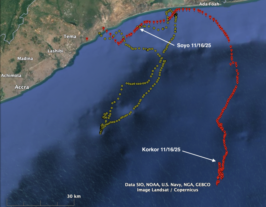 TRACKS OF SOYO AND KORKOR -- OLIVE RIDLEY TURTLES IN GHANIAN WATERS