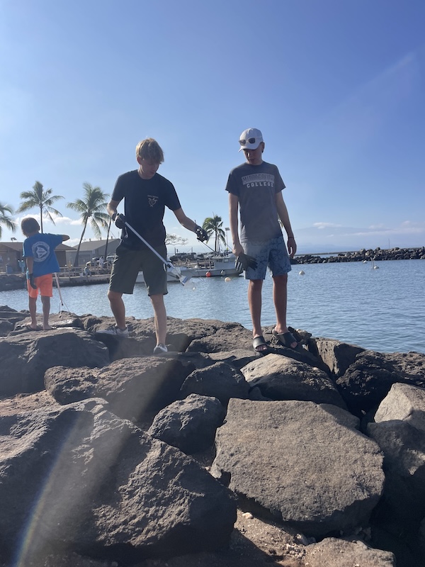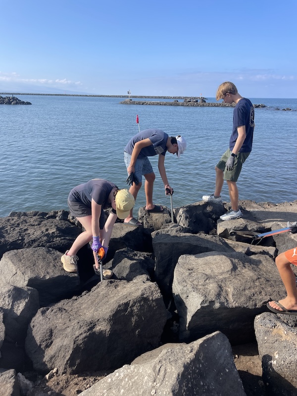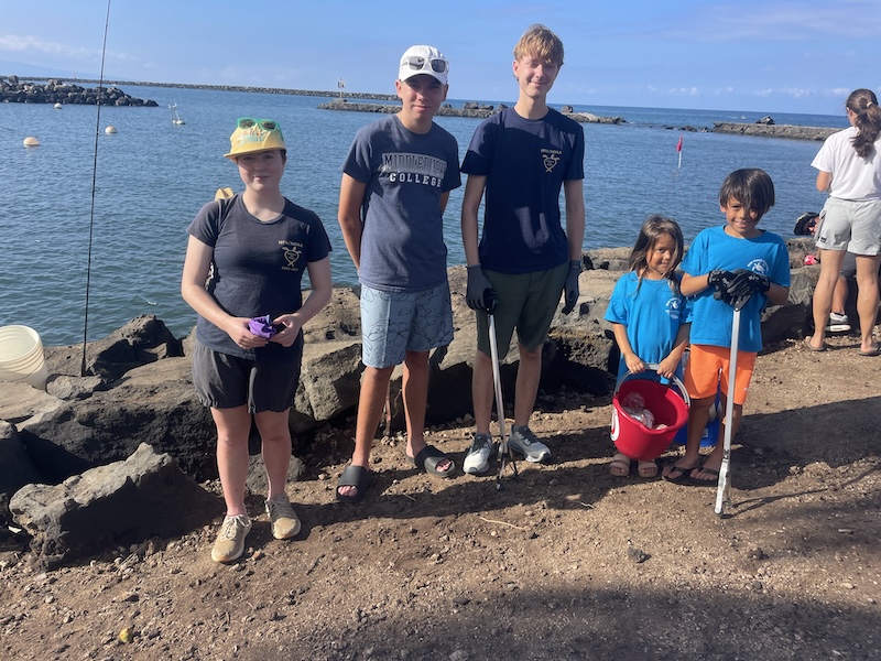 Laura Jim, Tani Cordiero and 4 HPA student volunteers joined the “Keep Puako Beautiful” organization to help with a coastal cleanup at the Kawaihae Harbor area. The day was beautiful and calm and the community was able to retrieve roughly 75 pounds of trash from the Kawaihae harbor area!